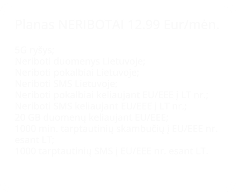 Pokalbių, SMS ir interneto planai be jokių įsipareigojimų ir terminuotų sutarčių.